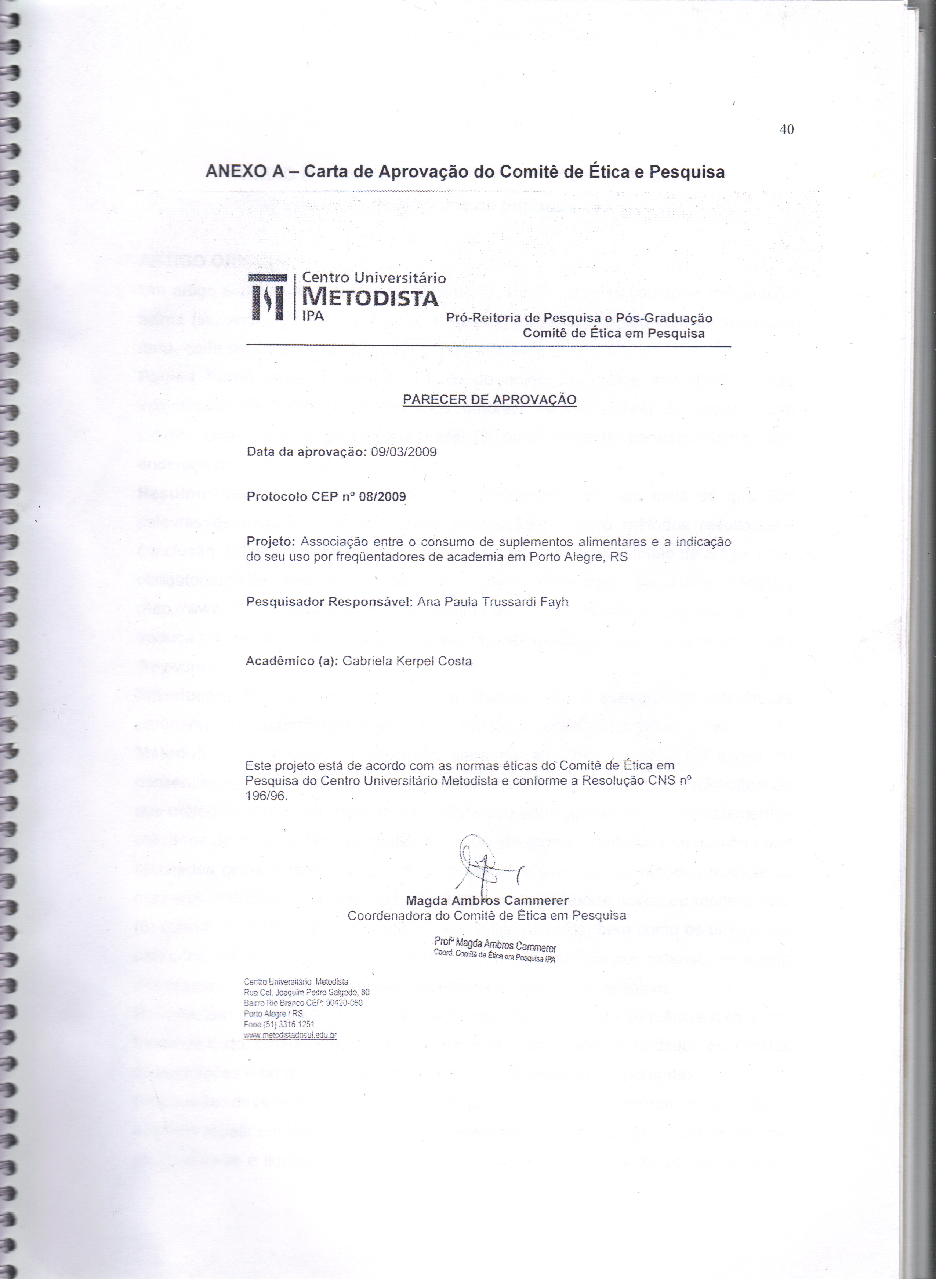 CONSUMO DE SUPLEMENTOS NUTRICIONAIS POR FREQUENTADORES DE ACADEMIAS DA CIDADE DE PORTO ALEGRE