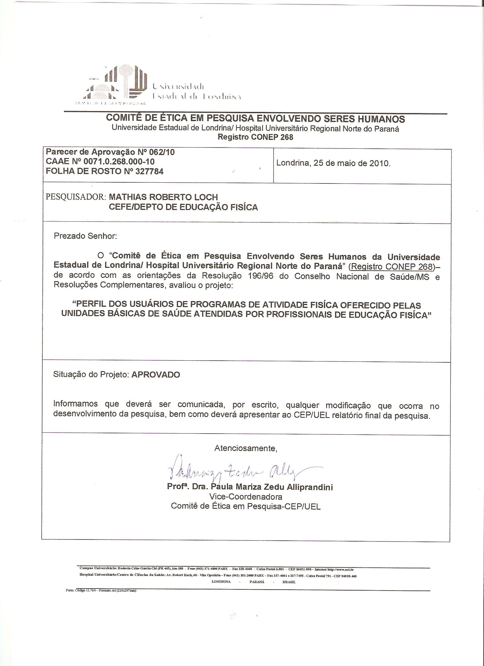 • Mathias Roberto Loch, Departamento de Educação Física Universidade Estadual de Londrina
